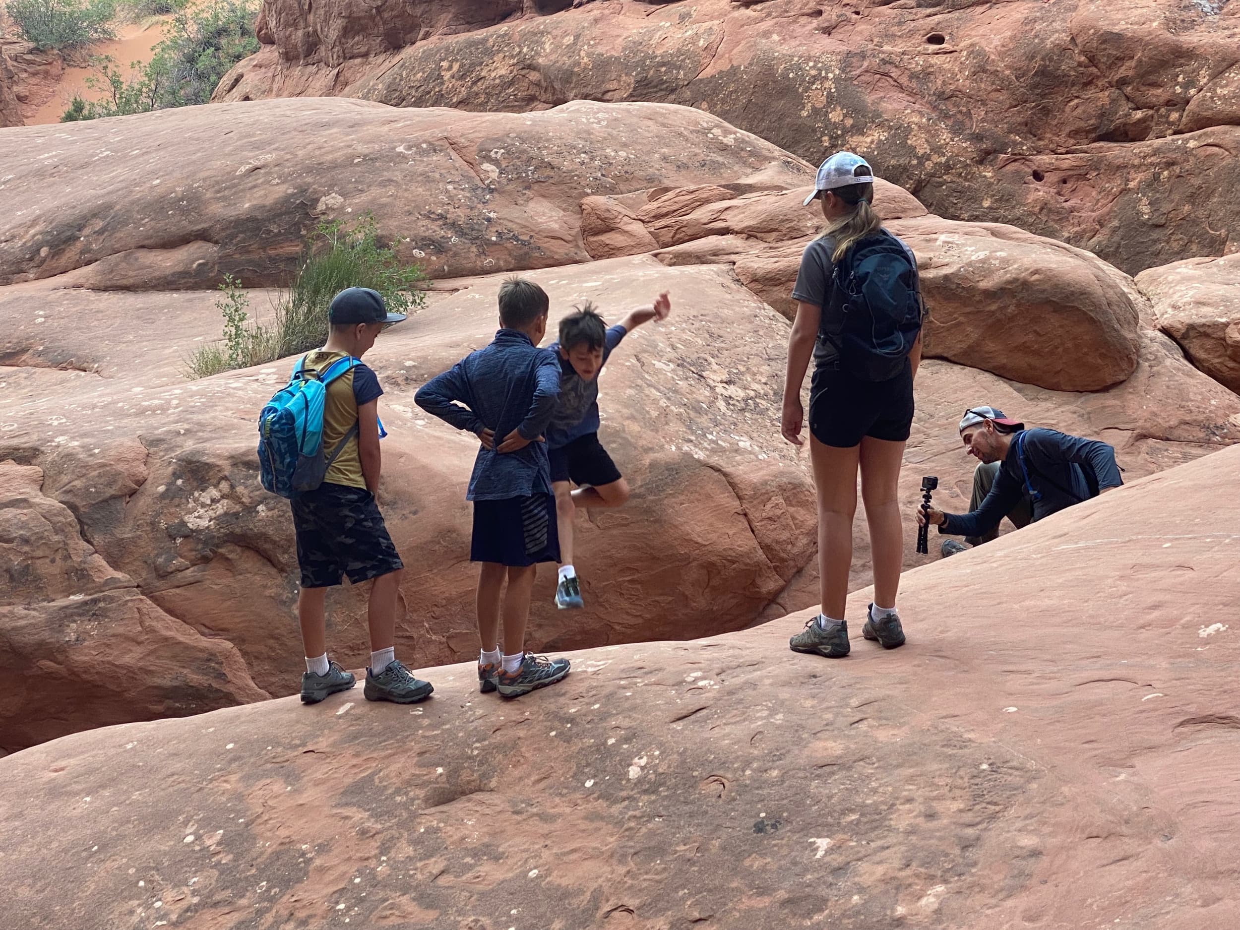 It was a relatively cool and crowd-free morning climbing the sandstone cliffs up to Delicate Arch, and we all enjoyed the spectacular views at the top.