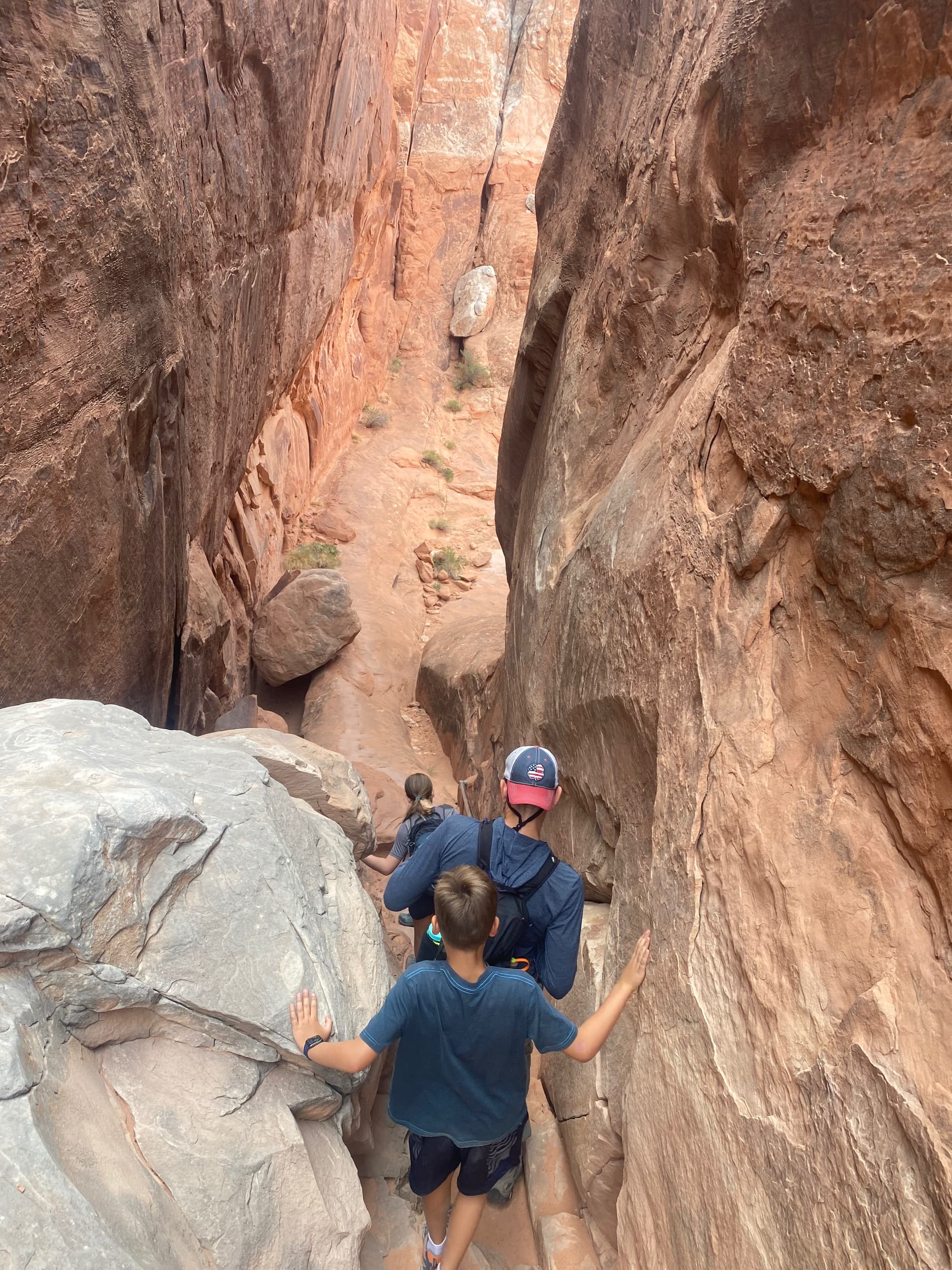 Last time our family attempted to hike the Fiery Furnace, we got a little “lost” on our way, and ended up eventually having to make our way out of the rock area, skirting around part of the perimeter of the rocks, in order to get back to where we started. Getting lost is a very real reality if you attempt this adventure! Because of our experience two summers ago, we were dying for a re-do!