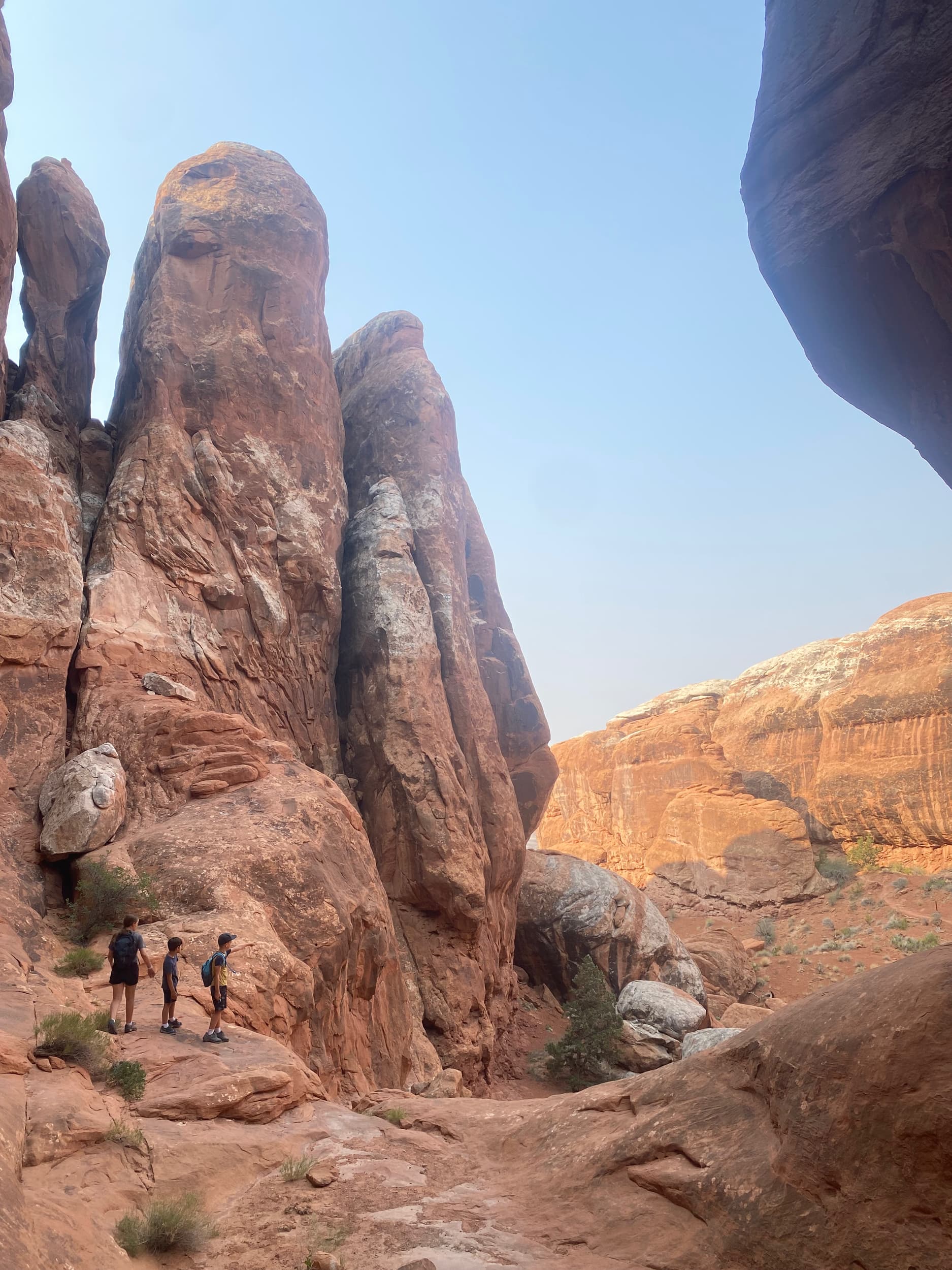 From the Delicate Arch Overlook, we continued on to complete the Devil’s Garden Primitive Trail Full Lollipop. We highly recommend this hike, though it is a strenuous one, and most appropriate for older children. At many points, we were bouldering, shimmying up the “fins” of sandstone, and trekking through sand. SO MUCH FUN.
