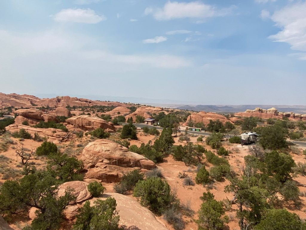 After our visit to Black Canyon of the Gunnison National Park in Colorado, we drove three hours to Arches National Park, arriving at one of our lodging destinations, the Moab Valley RV Resort. We had stayed at this property before, and LOVED it, especially for its proximity to the park and for the amazing pool there. This amenity was especially clutch because the temperature on our day of arrival was 115 degrees!