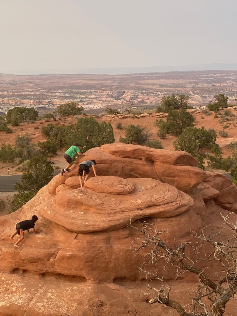 It was a relatively cool and crowd-free morning climbing the sandstone cliffs up to Delicate Arch, and we all enjoyed the spectacular views at the top.