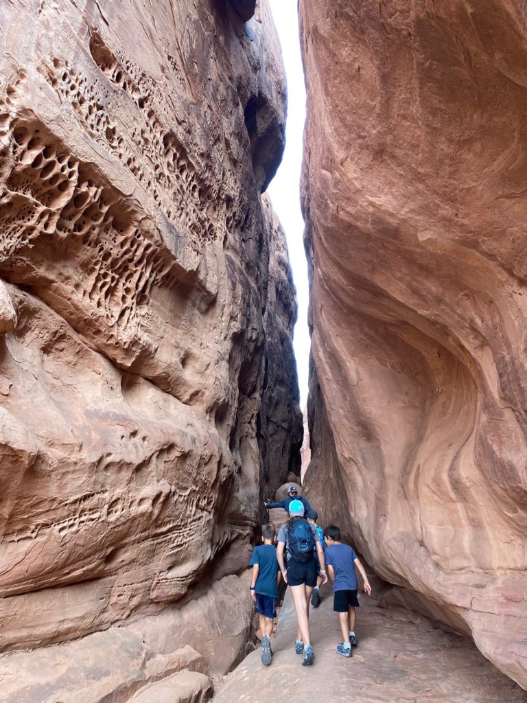 During our visit to Arches in 2019, we were able to secure permits to complete the Fiery Furnace on a self-guided tour. That being said, we actually did “get lost,” and had trouble navigating through, eventually making our way out of the rock area and skirting around the perimeter of the Furnace to get back. As a family, we kind of felt like we were “gipped” of the full experience that the hike offered (as fun as it still was!), so we hoped for a re-do in 2021.