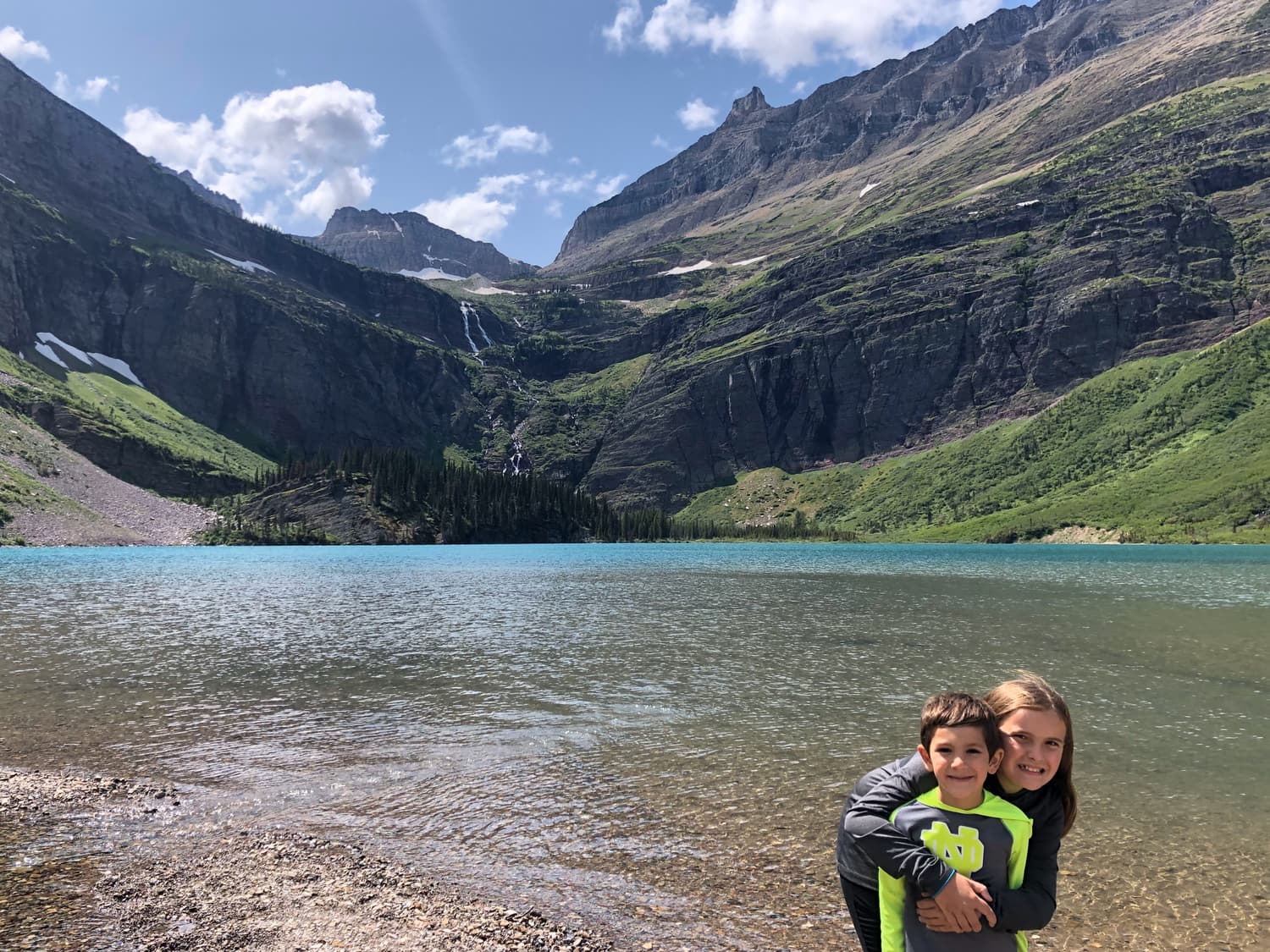 After thawing out from our hike to Hidden Falls, we made a stop at St. Mary’s Falls, and were accompanied by Grace and Hayden on our hike. It was sunny and warm by this point, and we really enjoyed the views of the falls and chatting with them along the way.