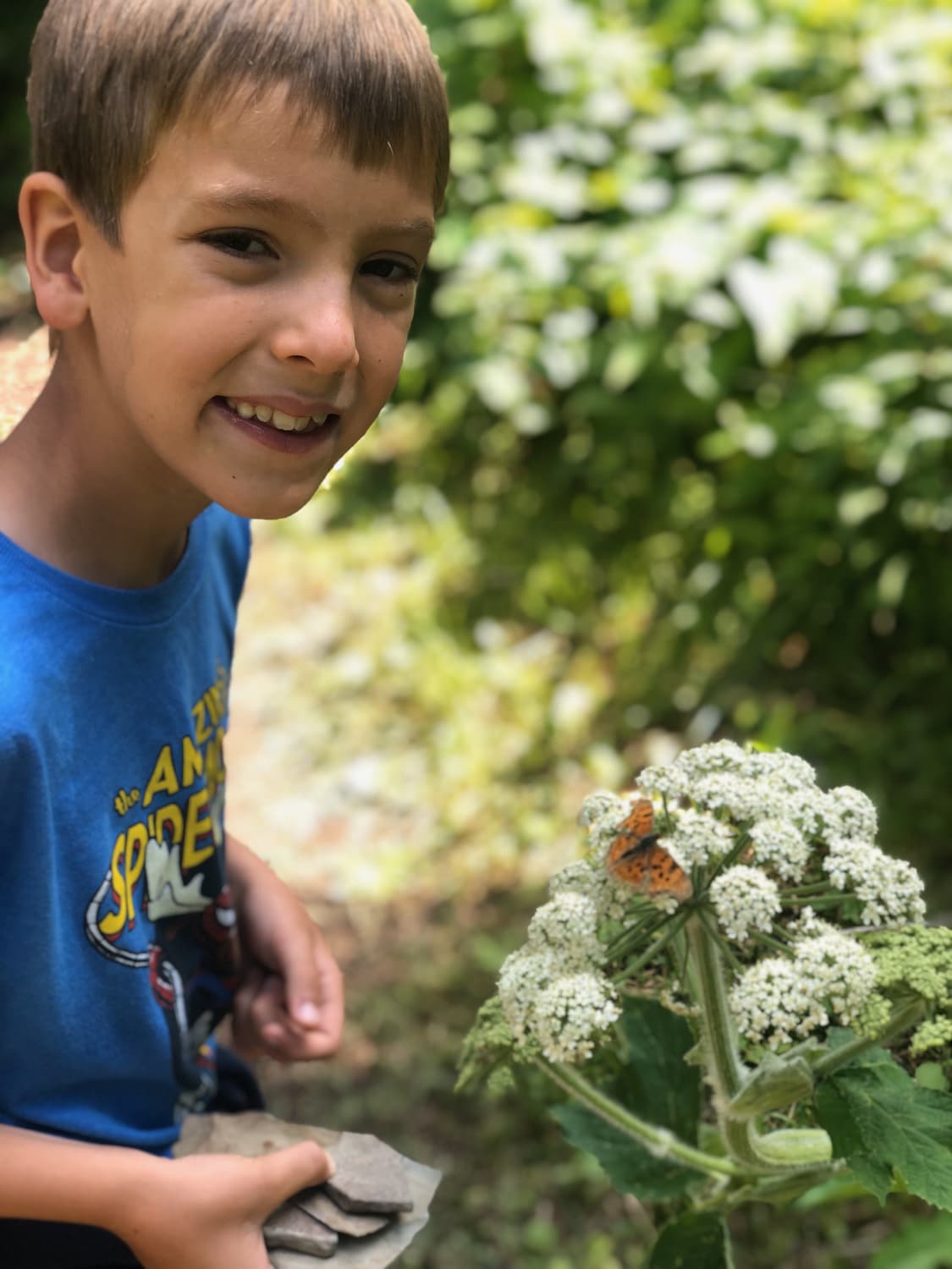 After waiting about a half hour, we decided to make the 2 1/2 mile trek back to the trailhead instead of waiting for another boat. Justin turned on some music on his speaker, and we hit the trail, expecting Quinn to really fall flat at this point of the day. But he never did. He and I hiked the trail together, and I was able to distract him with a million questions along the way to keep his mind off things. We heard some thunder along the way, and it even drizzled slightly for a few minutes, but it was a lovely walk and the kids were in the best spirits. I didn’t say a word about it to Justin, worried I would jinx it
