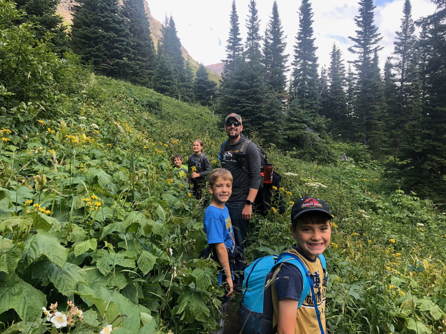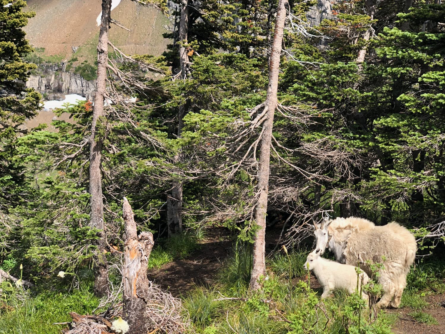 On our drive back from Lake McDonald to St. Mary’s, we stopped at a few more scenic overlooks, our favorite of which was where we spotted a herd of mountain goats, including several babies. The kids loved it, and spent the better part of the afternoon teasing Justin about them with what has now become a running family joke. When he first saw them, he was so excited and yelled to kids, “Check it out guys!” A quizzical look quickly emerged on his face, and he wondered out loud, “What are those? Llamas?!” The kids got a good kick out of his naivety, and henceforth the lore of the Glacier “mountain llamas” was woven into our family story.
