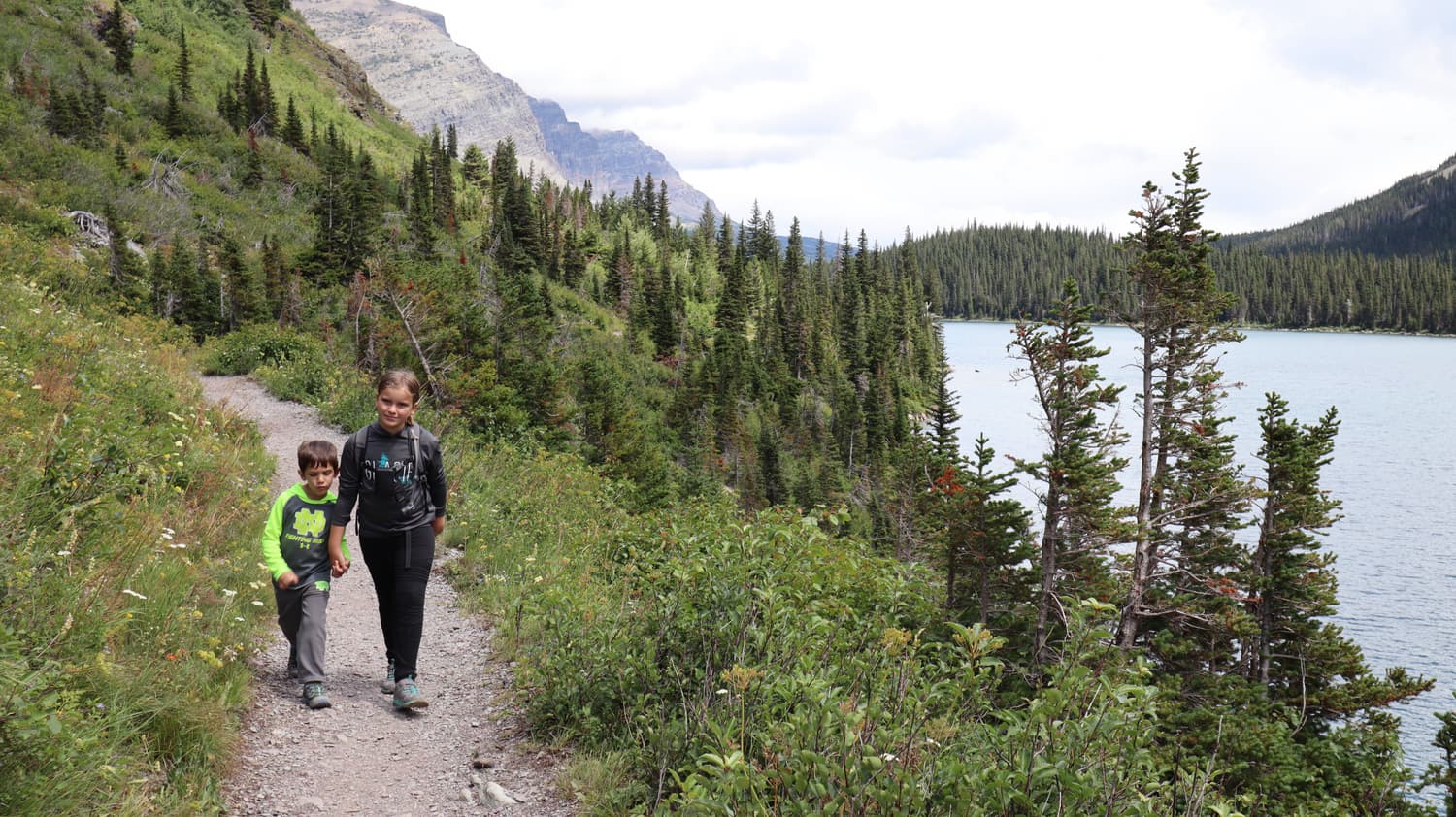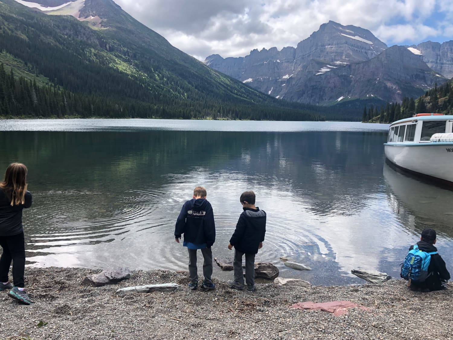 This hike proved to be one of our family-favorite hikes of all-time. We wound halfway around Swiftcurrent Lake, really one of the most picturesque lakes we had ever seen, and then along the South Shore of Lake Josephine, where we stopped for a while to skip some rocks, one of our kids favorite pastimes.