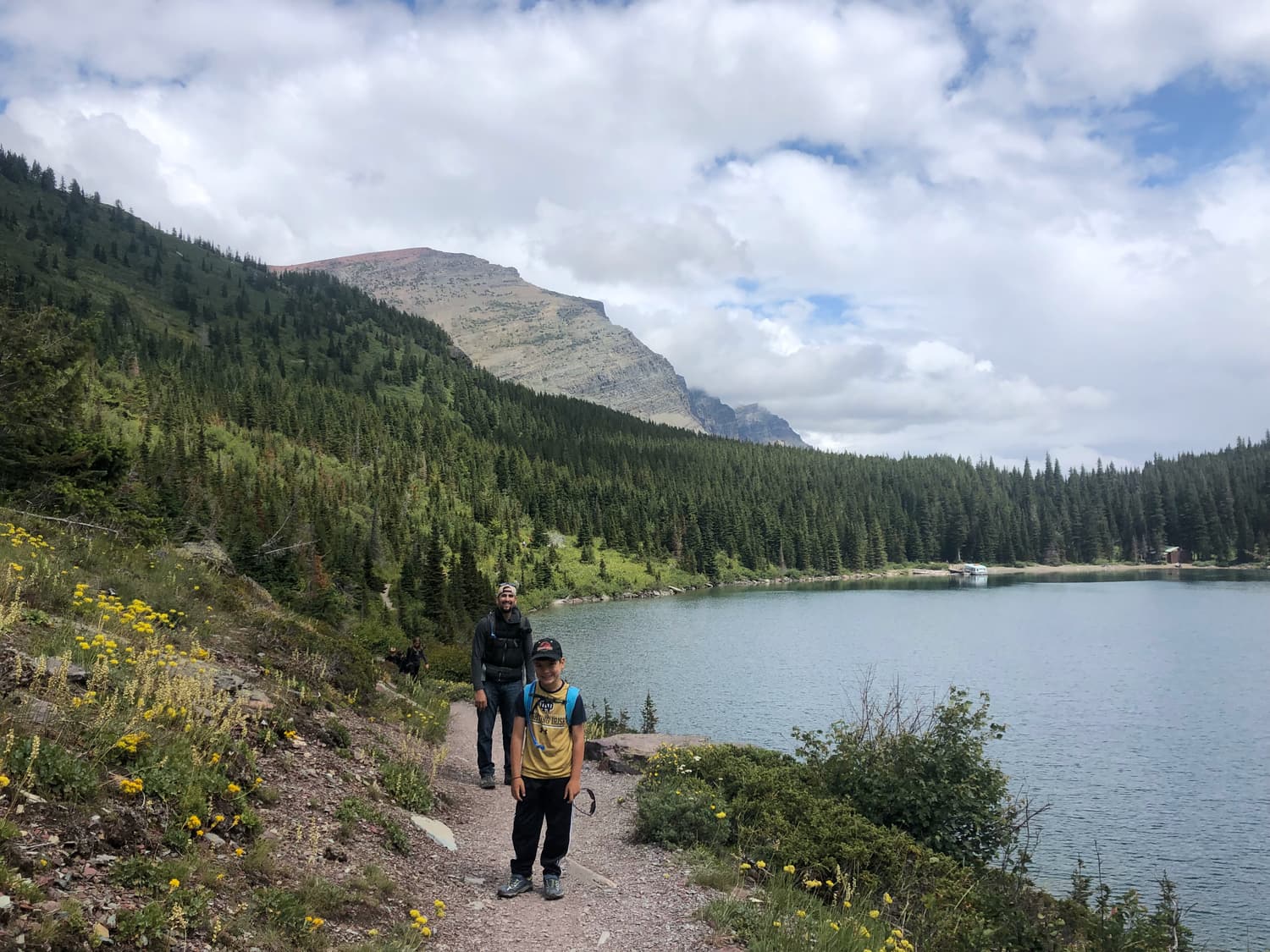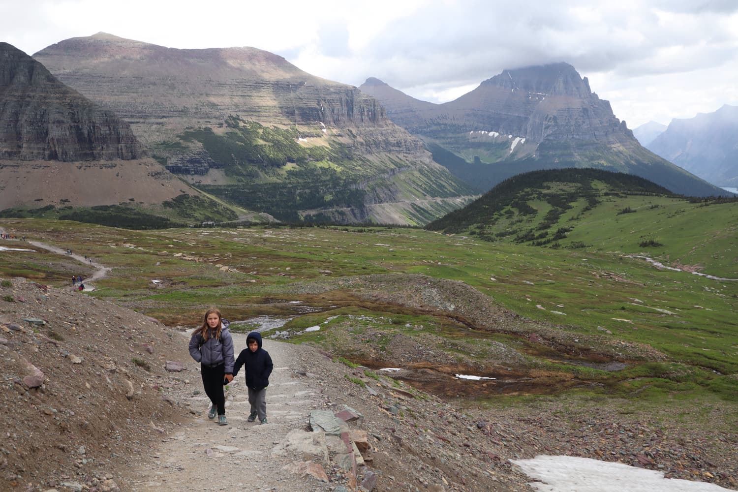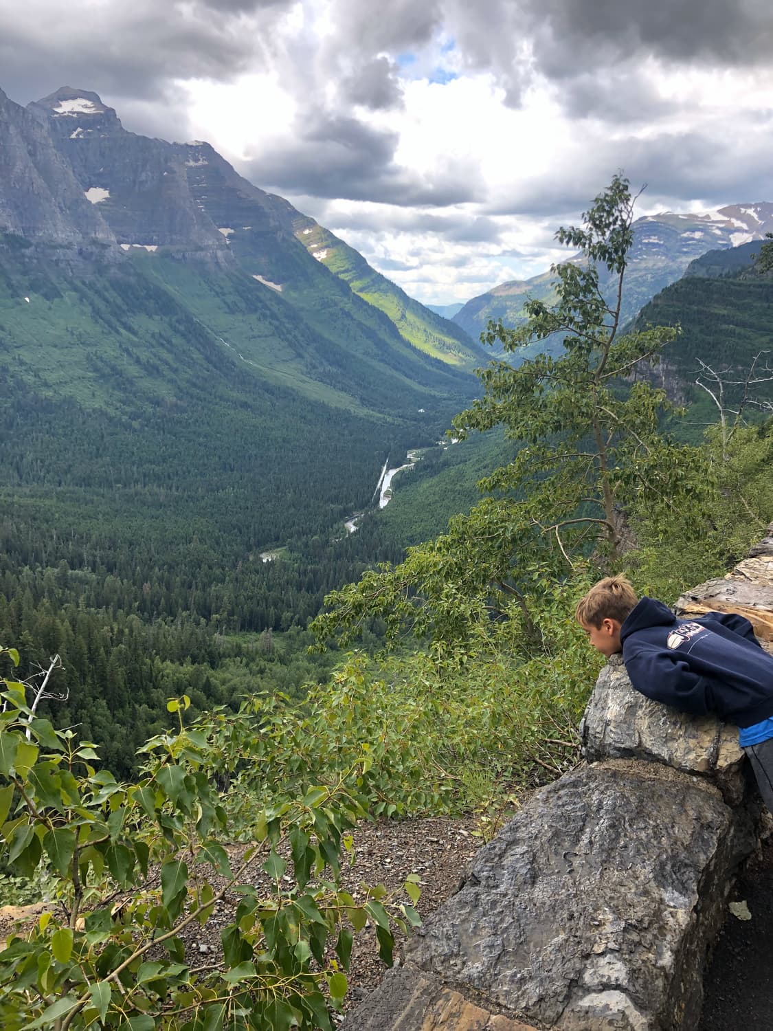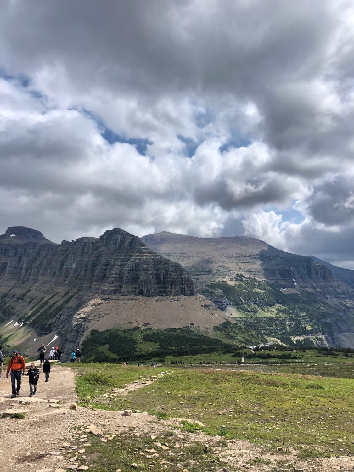 Day Two in Glacier began again in our rental car, departing on the Going to the Sun Road and heading toward Logan Pass, where we picked up the trailhead to a hike to Hidden Lake. The hike was gorgeous, and had a good elevation gain, and Quinn needed a little assistance along the way. We saw several more mountain goats, as well as a few small waterfalls on the sides of the glacial cliffs that surrounded us. The beauty in Glacier really is other-worldly