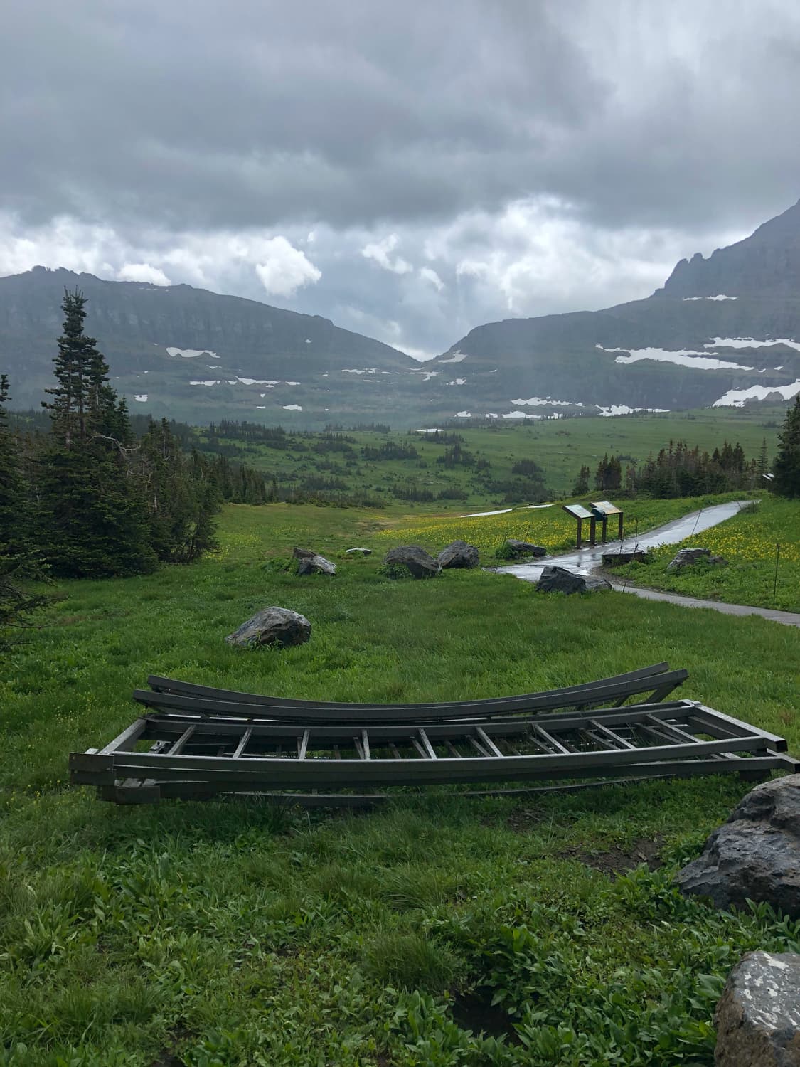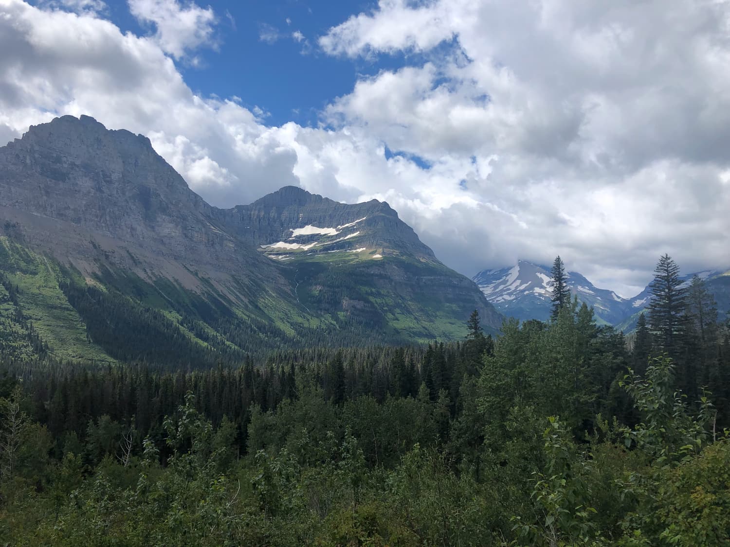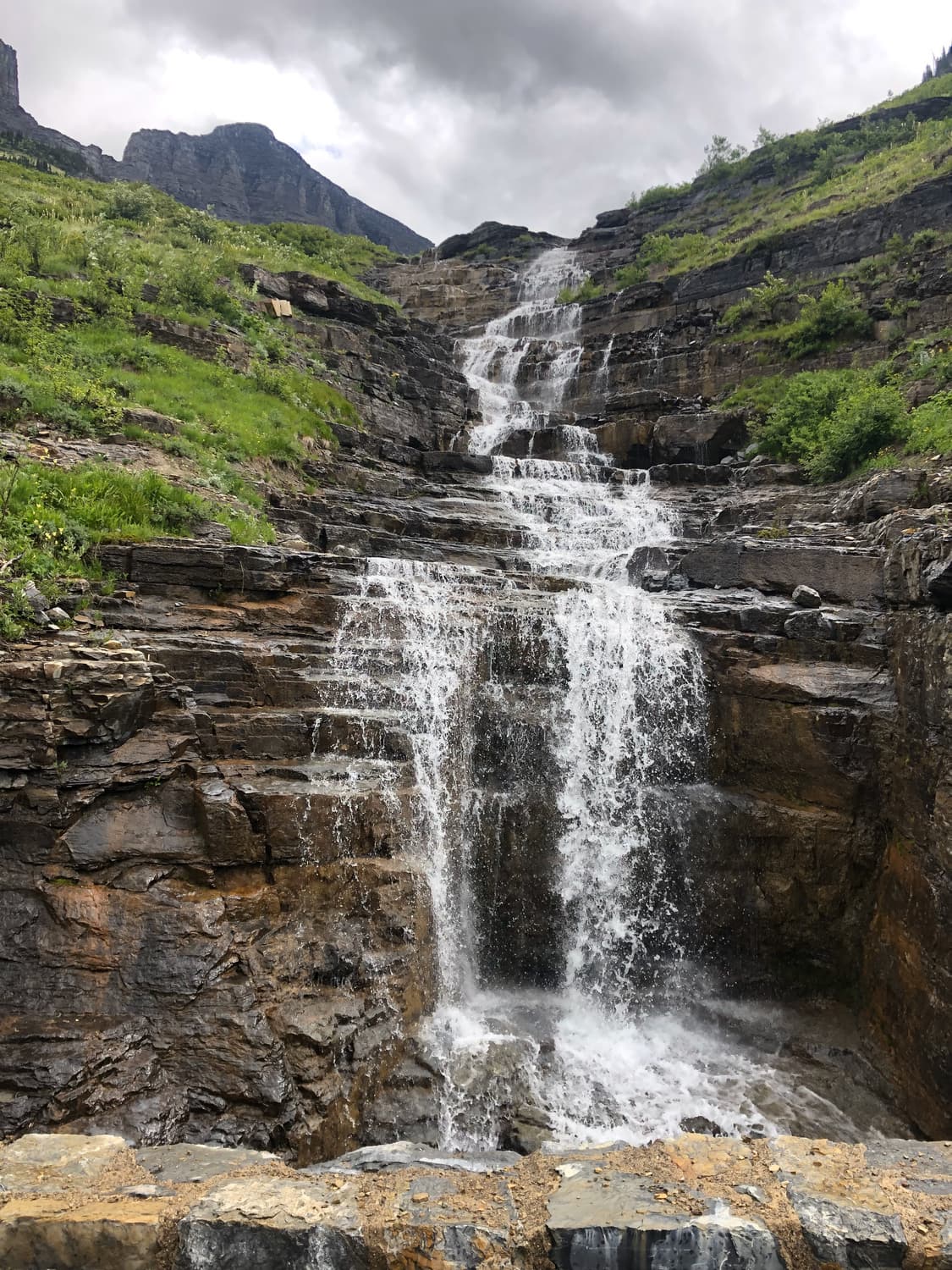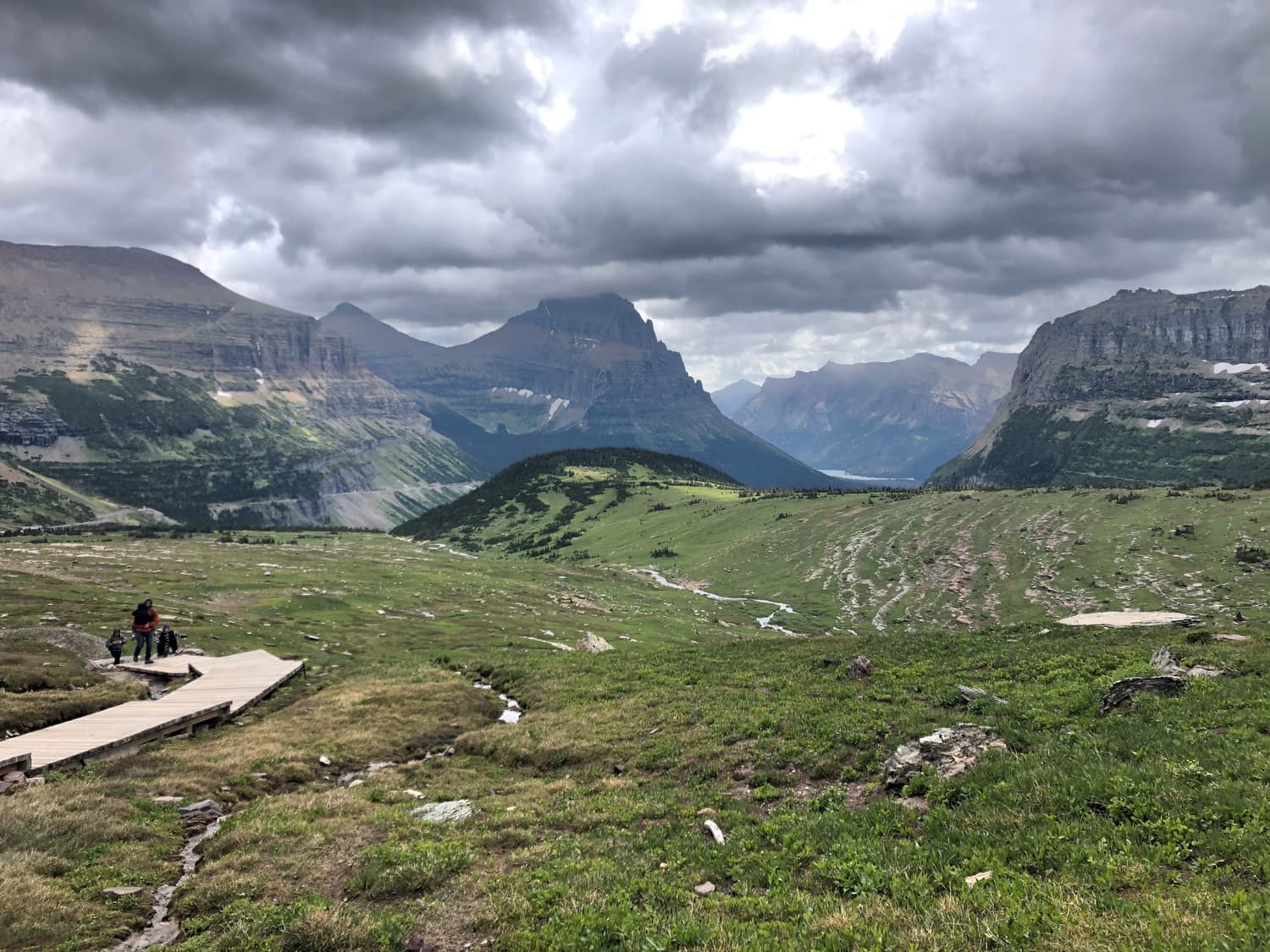 Day Two in Glacier began again in our rental car, departing on the Going to the Sun Road and heading toward Logan Pass, where we picked up the trailhead to a hike to Hidden Lake. The hike was gorgeous, and had a good elevation gain, and Quinn needed a little assistance along the way. We saw several more mountain goats, as well as a few small waterfalls on the sides of the glacial cliffs that surrounded us. The beauty in Glacier really is other-worldly