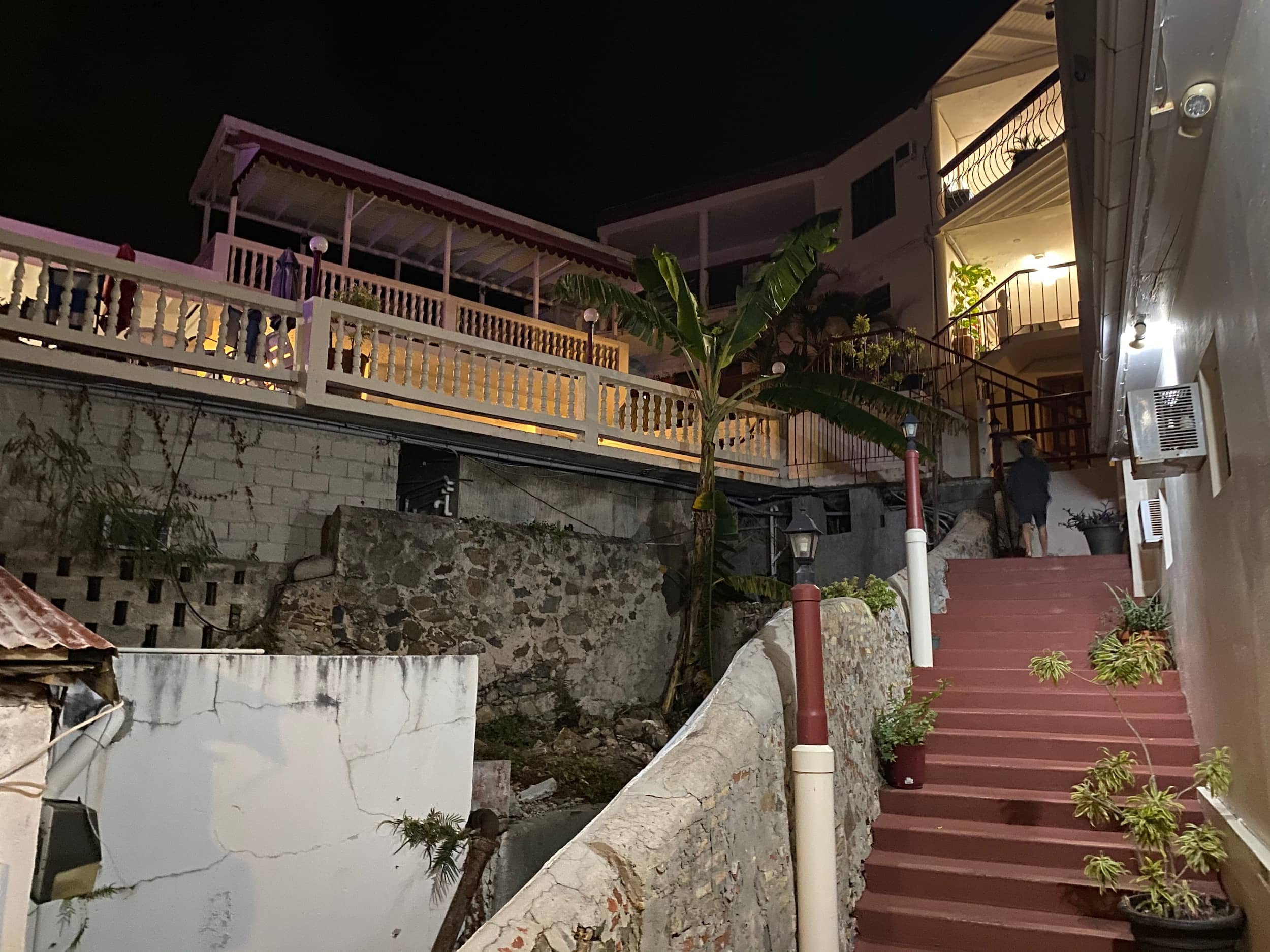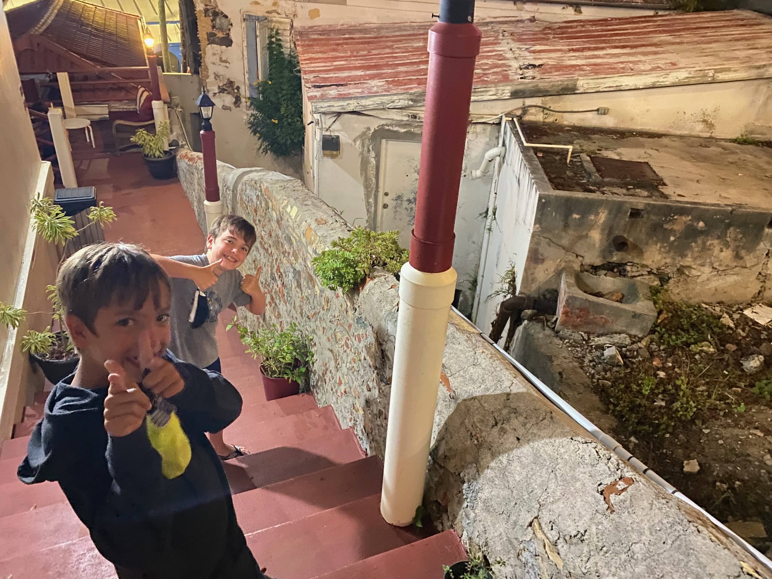 We arrived back on the island of St. Thomas that evening, and our driver delivered us to our “very European” hotel that we’d booked for a quick stay since we’d be leaving for the airport at 5am the next morning. This place was a trip! We had dinner at the rooftop restaurant with the kids, where Brady tried calamari for the first time (hilarious!), and we all hit the bed for a quick and awful sleep. Alas, all good things eventually come to an end! I told the kids that our experience that night reminded me a TON of backpacking through Europe in College!