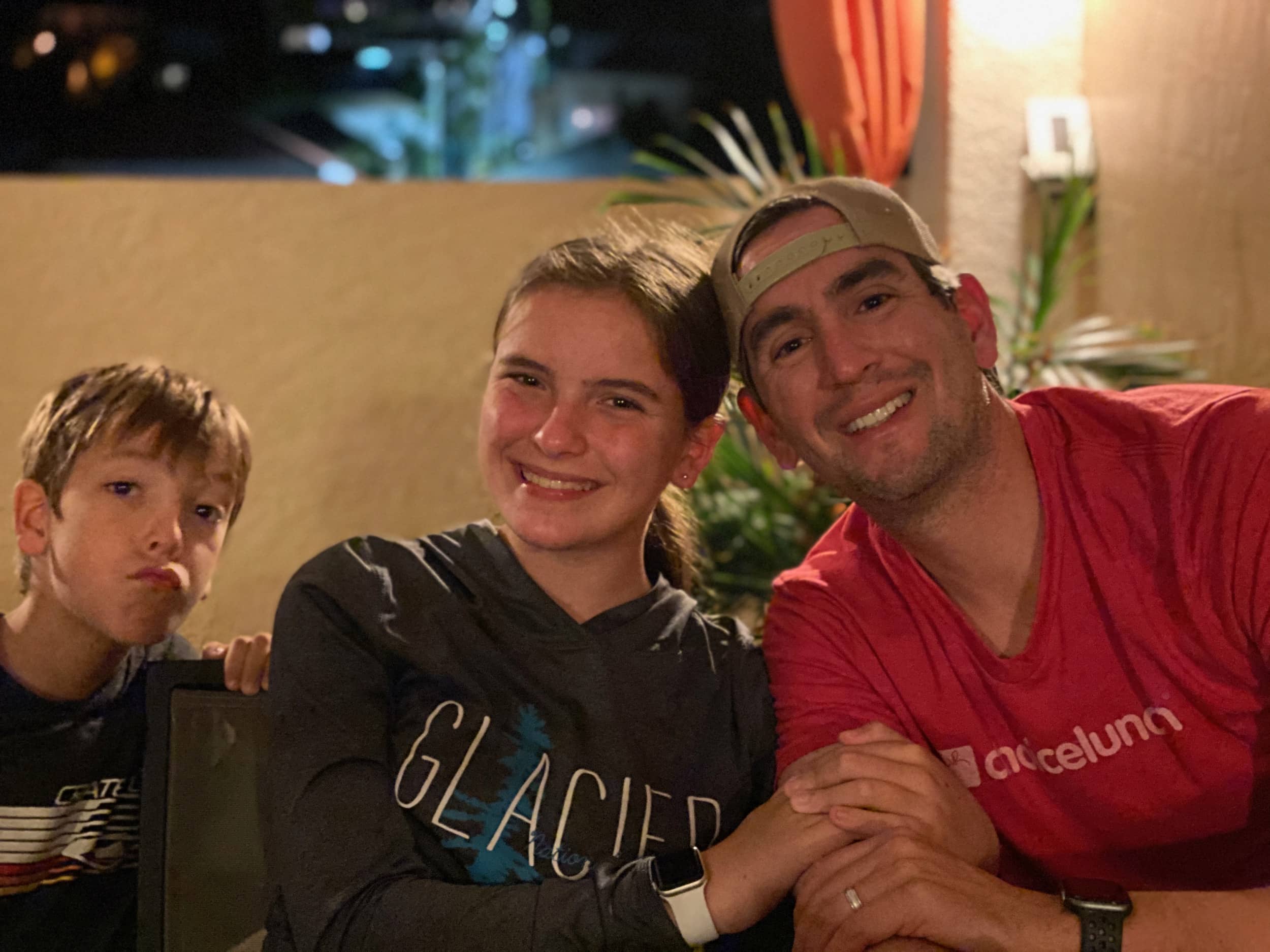 After a full school day in Miami, the last hour of which our kids did in the parking lot of the airport so that Grace could take a math test, and which led us to being *just* on time for our flight and would come back to bite us when we checked in at the airport, we headed into the airport with nothing but a backpack for each of us. Since we hadn’t anticipated this trip, and didn’t have any luggage in the RV (and luckily needed very little for a four-day tropical escape), we each packed a backpack and called it good. Justin and I told the kids that it was a step in making sure they are very efficient and unfussy travelers as they grow up!