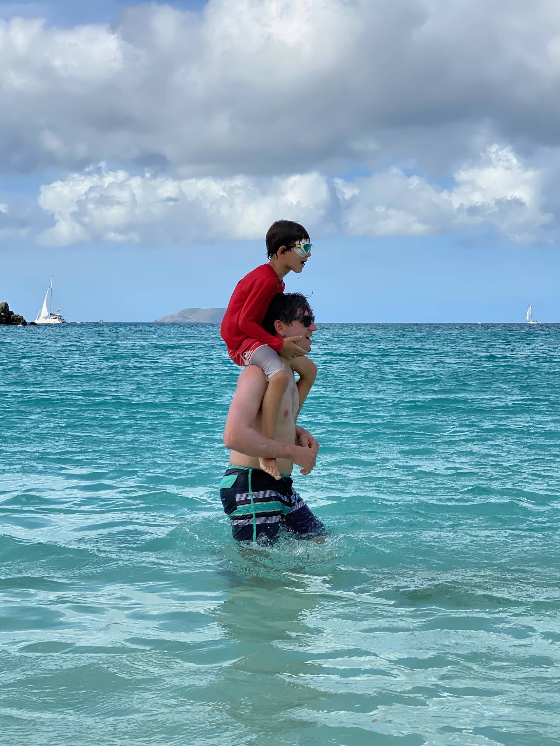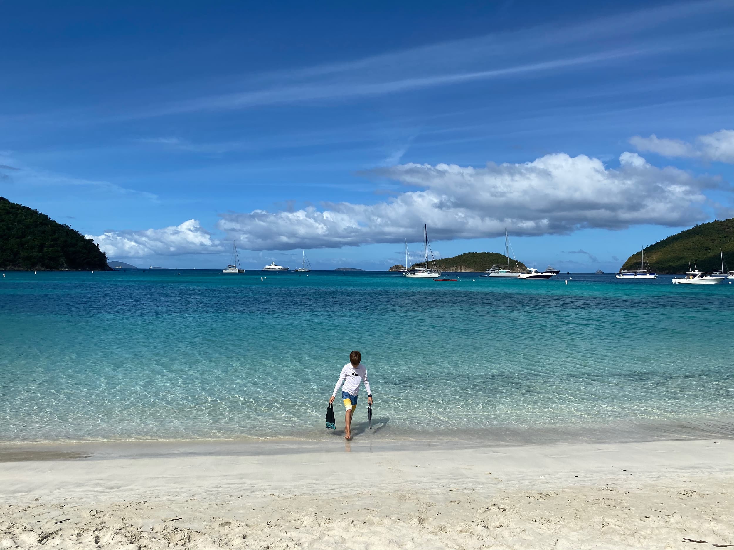 The next morning, we woke up with plans to explore more of the island and national park. Our family ventured to Maho Bay for the day, where we set up on the gorgeous, fine white sand beach, and prepared to snorkel with the gear we rented for the day from our hotel. This beach was incredible, and none of us will ever forget what it was like to stare into the faces of giant sea turtles as we snorkeled around in the protected and calm bay. I will never forget the excitement of watching my children experience this and their sheer joy while doing so.