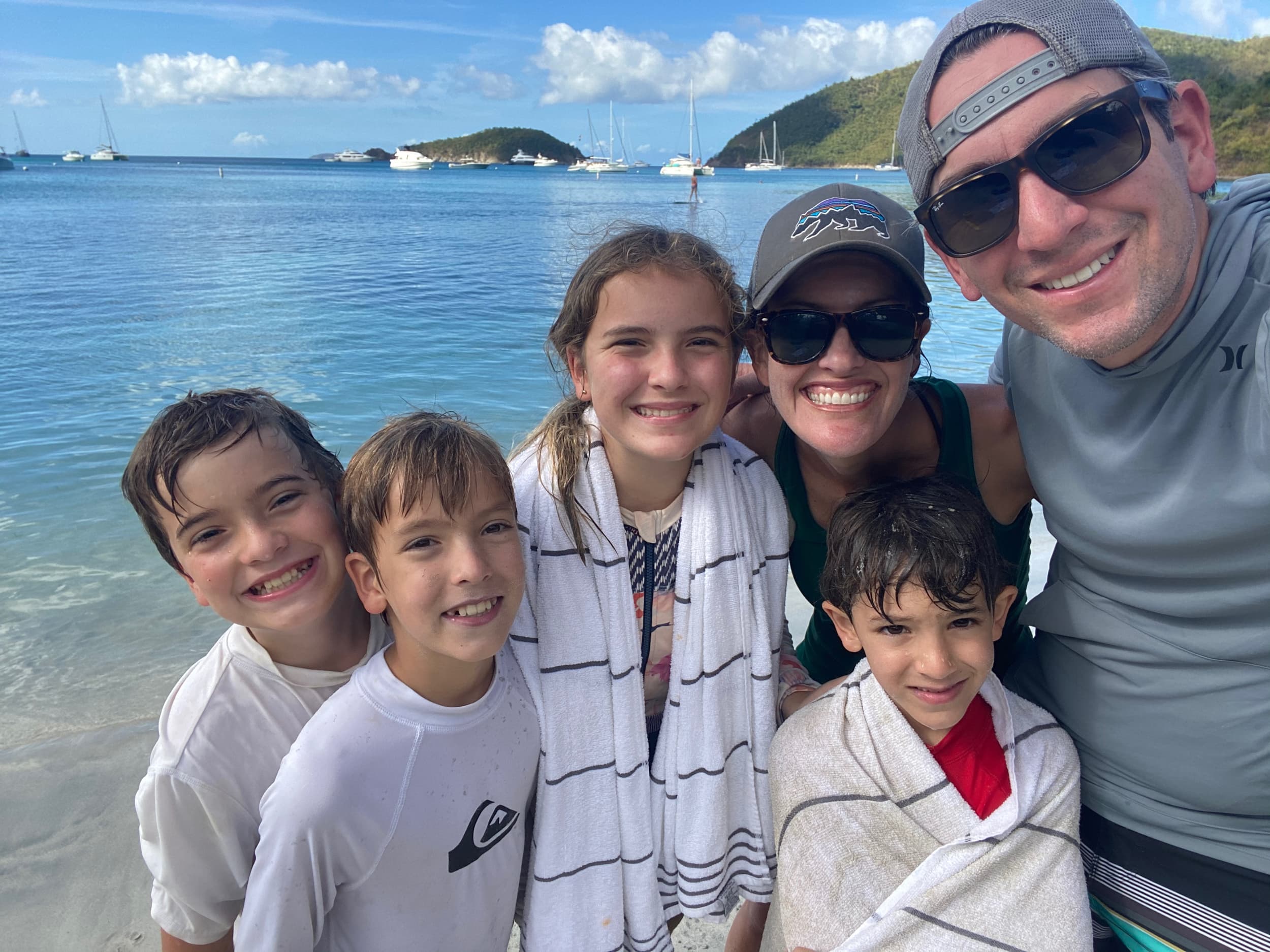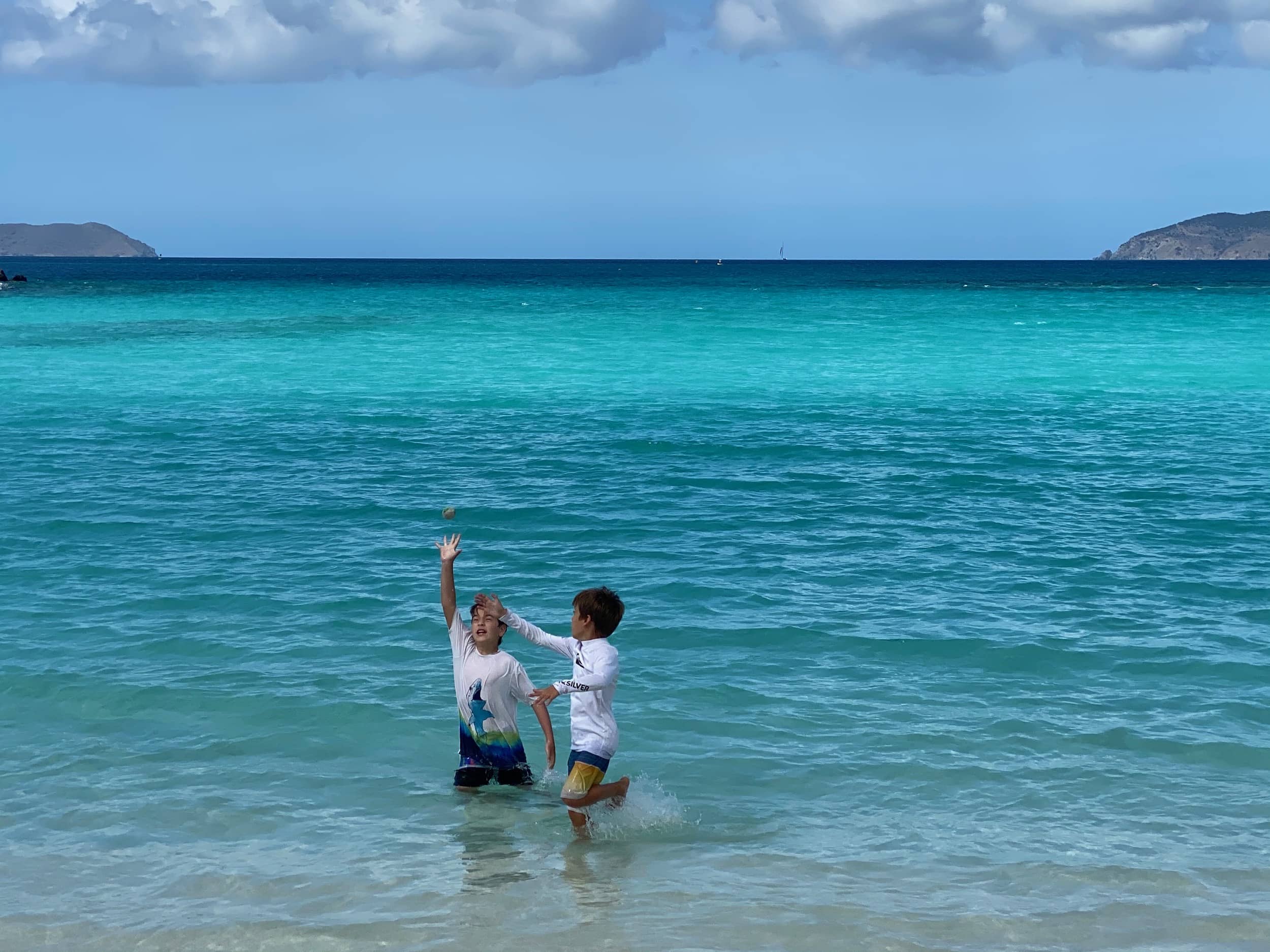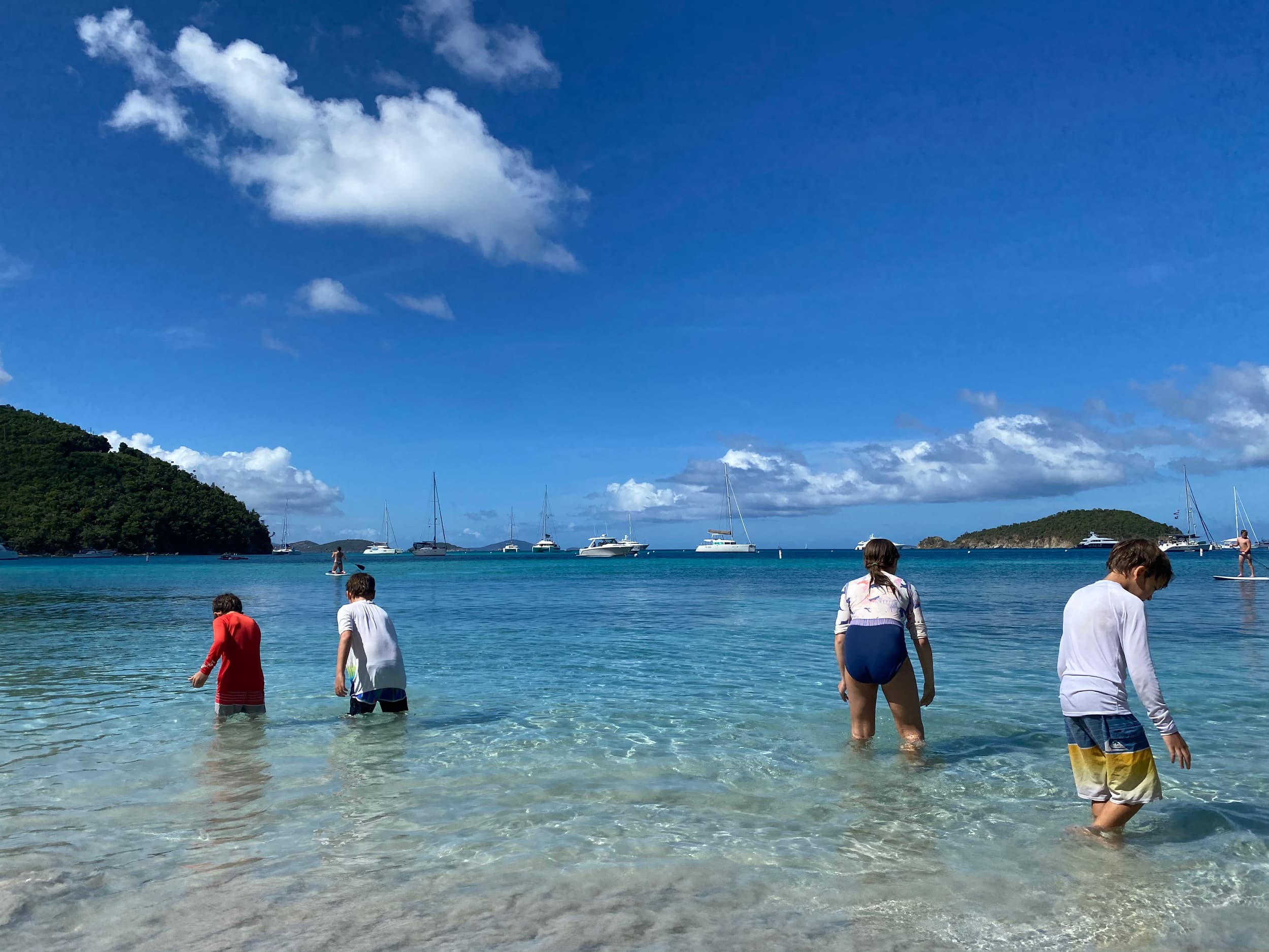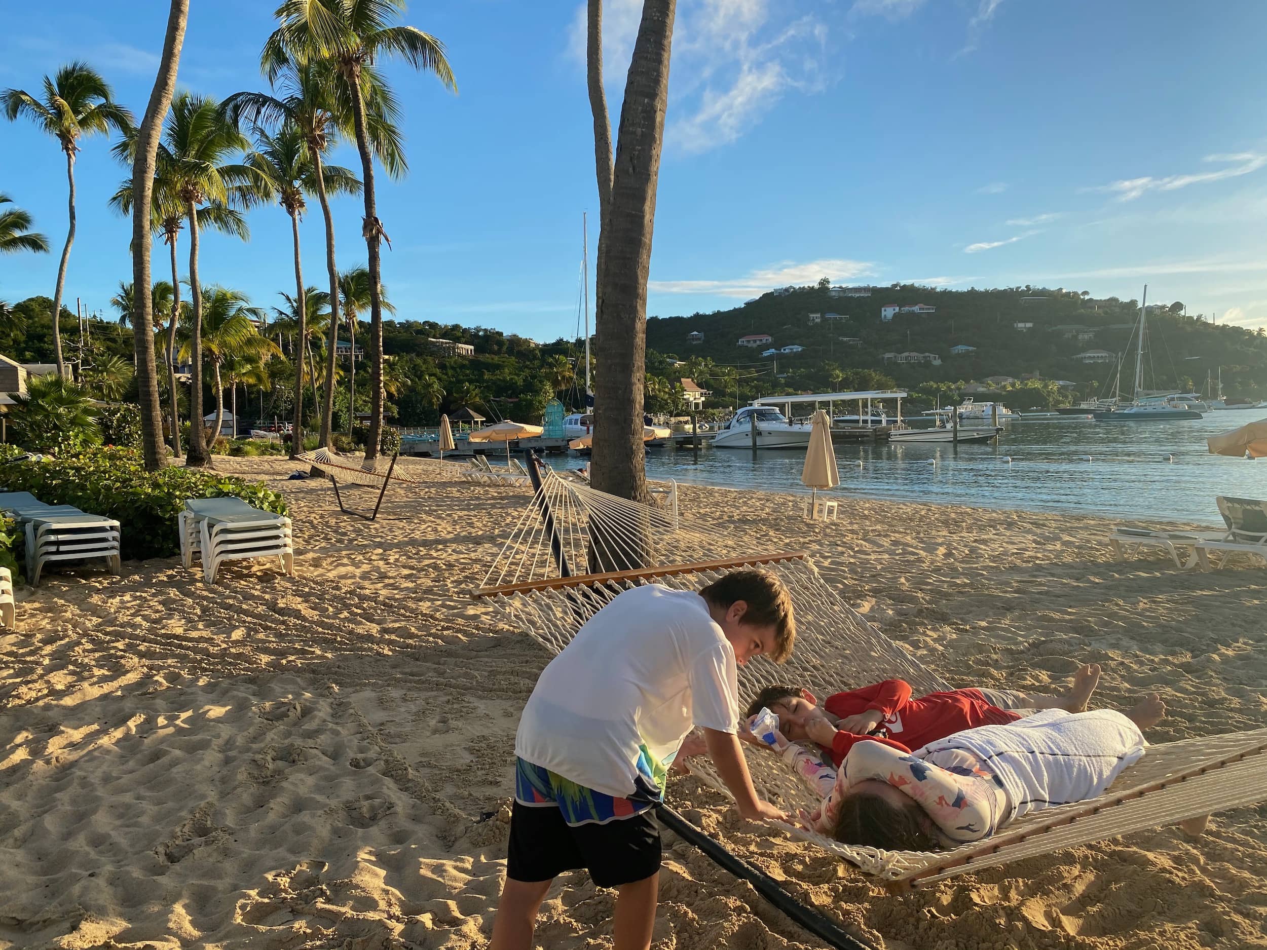 In the late afternoon, we arrived at our hotel, the Westin St. John, Cruz Bay, to check in and enjoy the sunset. The kids immediately went to work unpacking and organizing their things in our hotel room, running around squealing with delight at the amenities there, a true luxury after the last month in the RV. We hit the beach to enjoy the sunset and dinner, and, after dinner, took a night swim in the hotel pool under the night sky. We all settled in for a good night’s sleep after what had truly been a magical day in paradise.