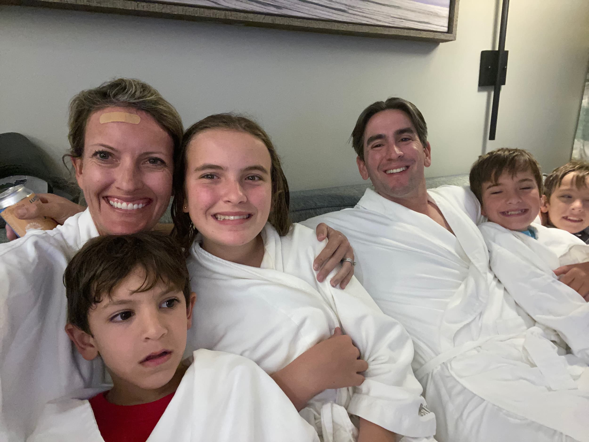 Justin and I began frantically filling out the necessary website and information from our phones. The process was LENGTHY, and I literally started stripping off layers of clothes because I was sweating so profusely, knowing we were already cutting it REALLY close on timing for our flight due to Grace’s math test. After filling out our paperwork, we ran through the airport, the kids chuckling along the way that they felt like the family in Home Alone. We made it to our gate just as the plane was boarding.