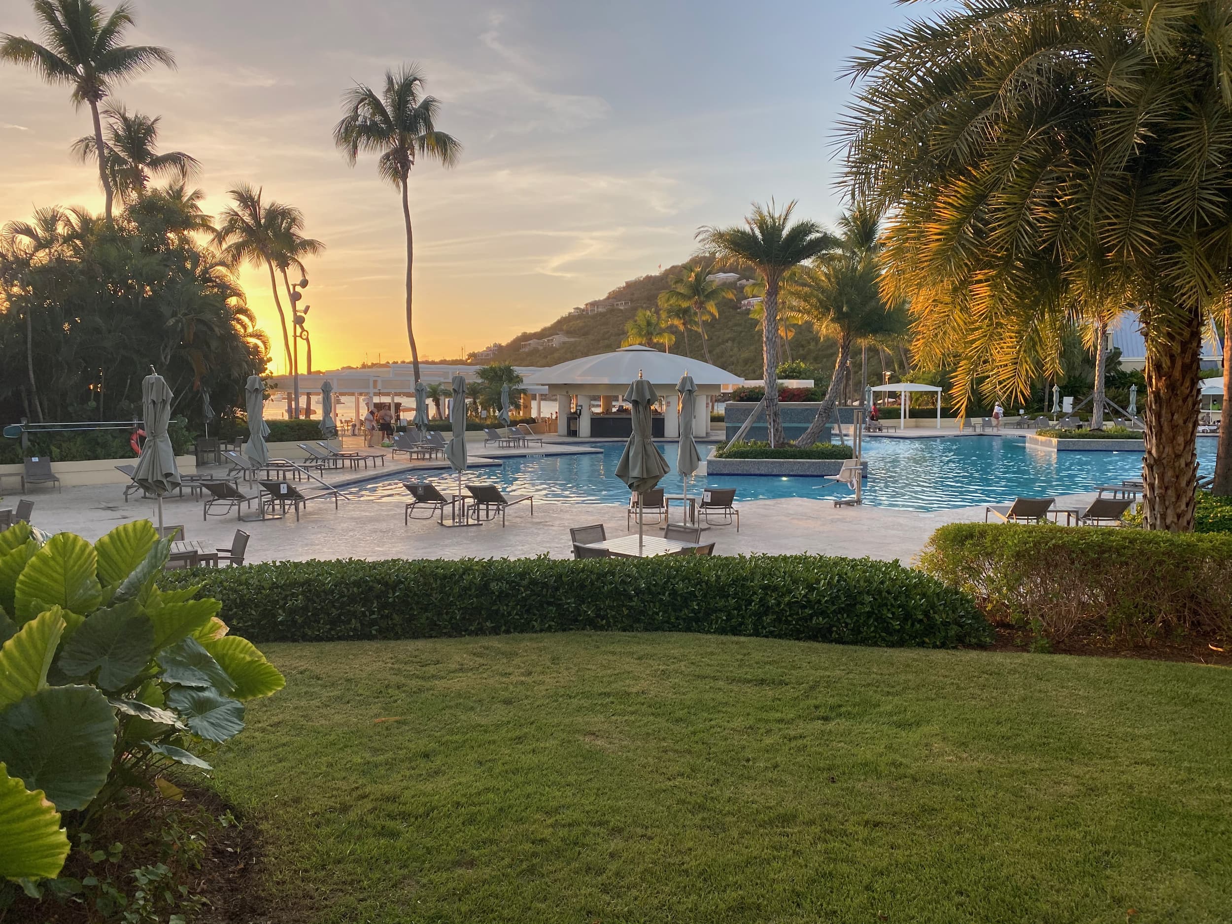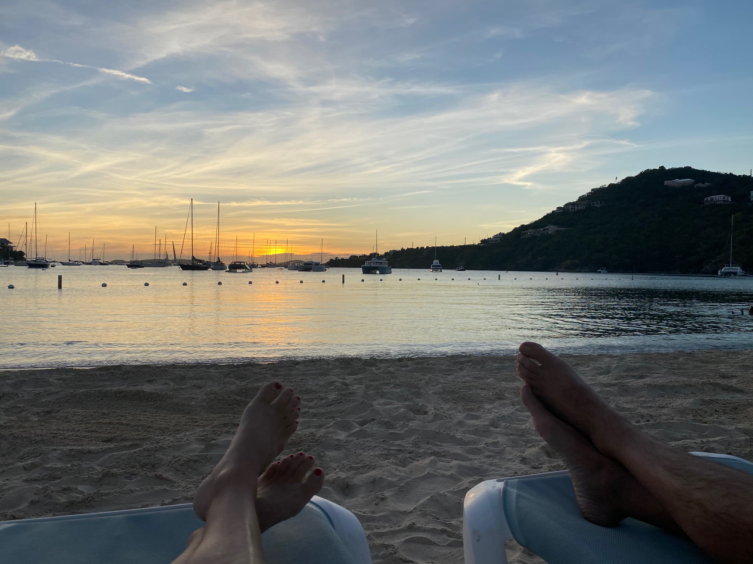 That evening, we enjoyed another gorgeous Virgin Island sunset at the Westin, and relaxed on the beach. Justin made sure to try a good cocktail, and had been saying our whole trip that just one time he needed to get “Two pina coladas. One for each hand.” so he finally made that dream come true.