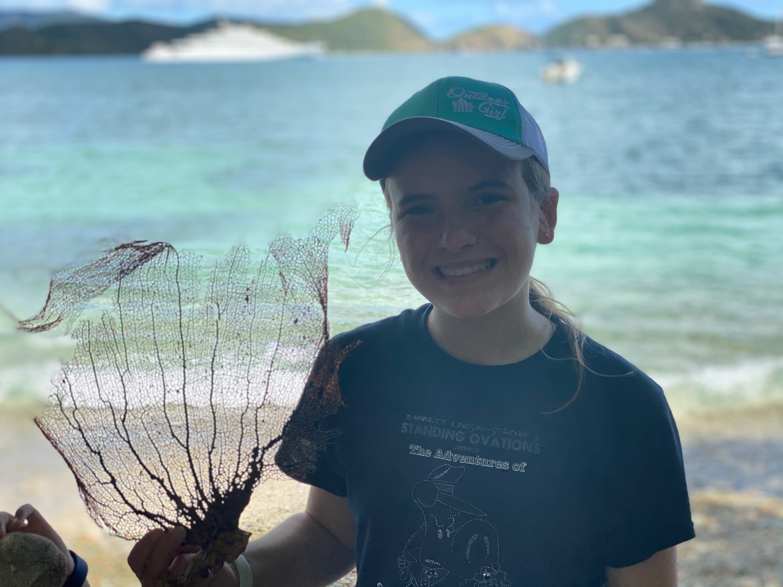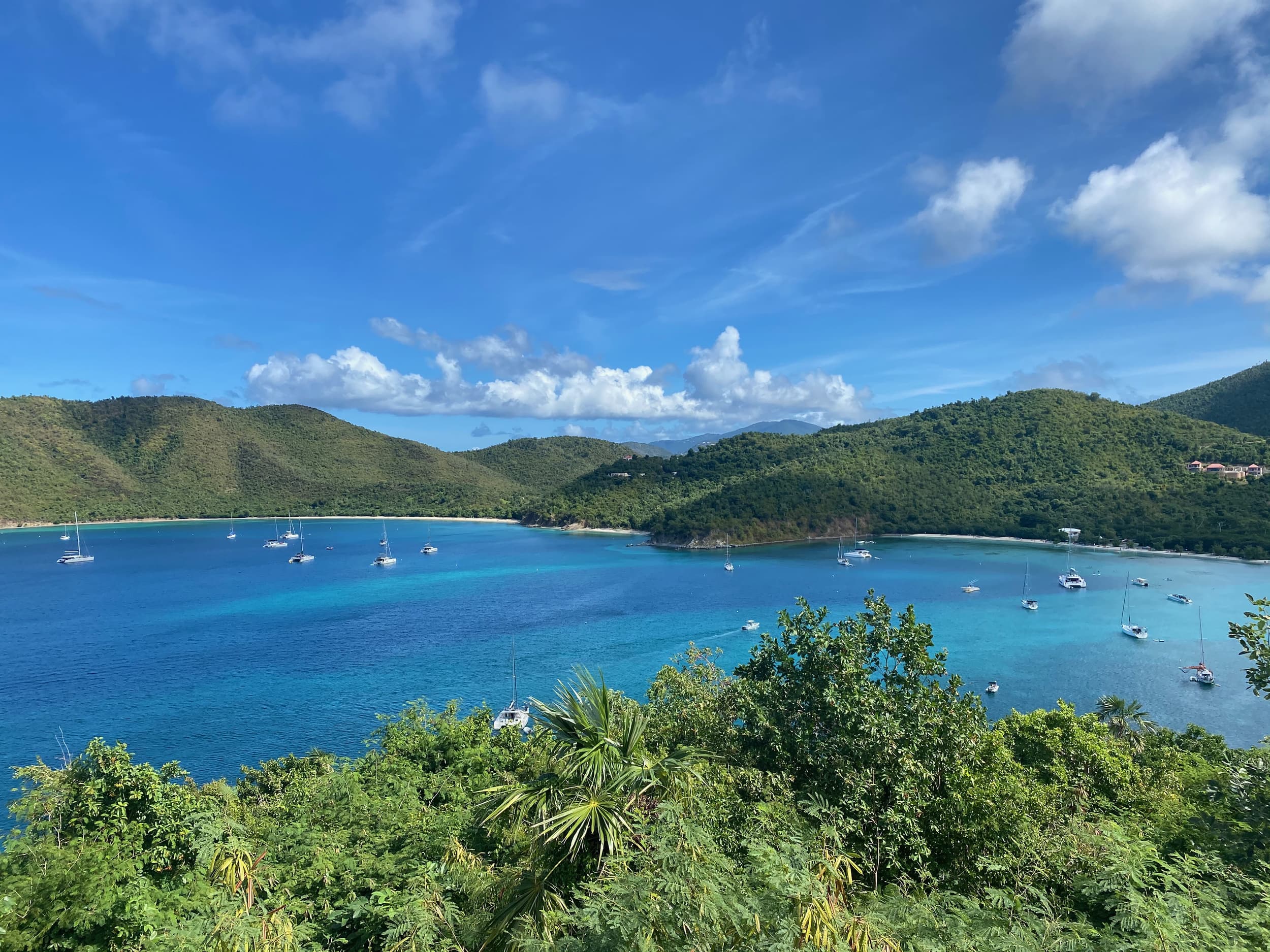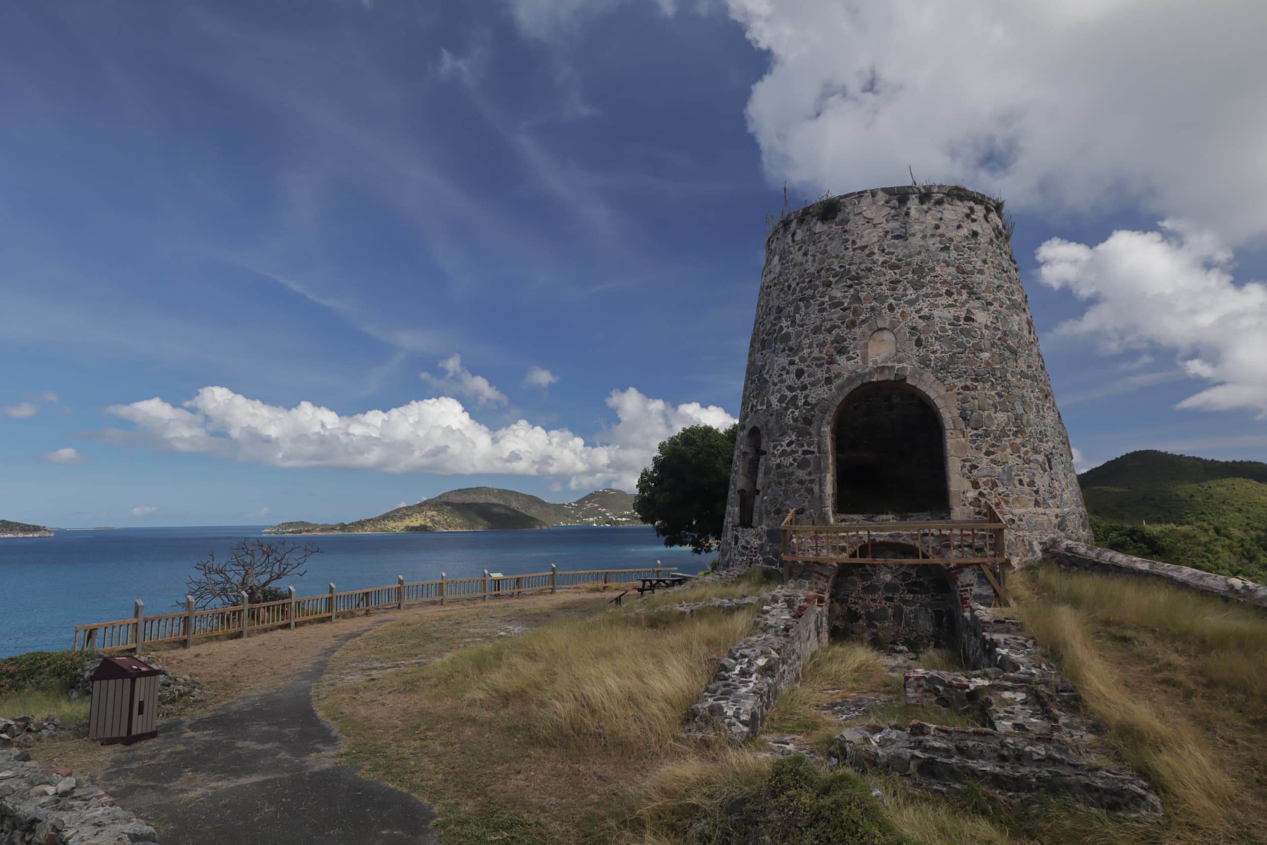 One of our first stops on our journey around the island after a few overlooks was the Annaberg Plantation, the historic ruins of a sugar mill from the 1800’s. In order to see the Plantation, we took a short hike up from the parking lot to a beautiful area overlooking the BVIs across the water. At the top, we swooned, seeing the lush foliage, crystal clear blue water, and trees swarmed with butterflies. It was spectacular!